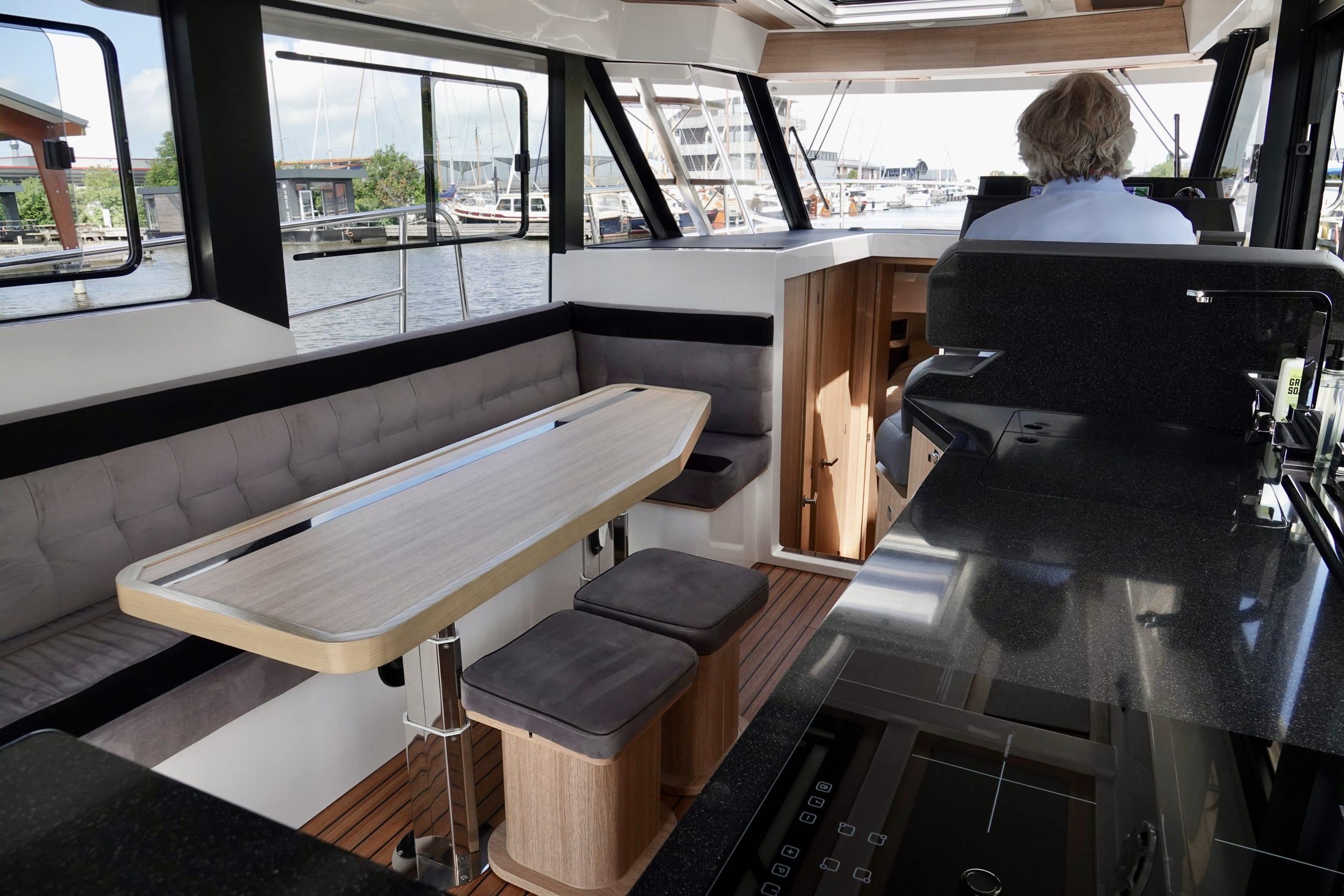 The zero emission Northman 1200 Electric is ready for the future. Enjoy a long electric range and discover the possibilities of the Methanol Fuel Cell that we use as a Range Extender allowing you to boat zero emission and independent of shore power. In addition to the electric drive technology, several aspects highlight electric features on board. Of course, the proportional bow and stern thrusters are electric as well which contributes to  the safety and comfort of boating. The modern kitchen includes an induction hob and a combi oven.